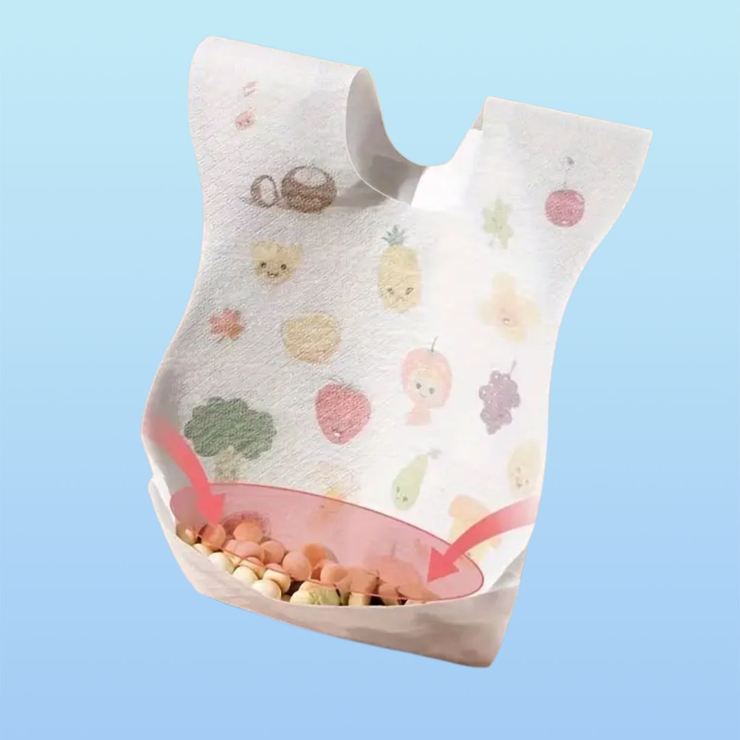 Наши одноразовые детские нагрудники имеют трехслойная армированная конструкция (толстый нетканый материал, впитывающий слой и водонепроницаемая полиэтиленовая подкладка) для предотвращения протеканий и пятен, сохраняя младенцев сухими во время кормления. Изготовлено из биоразлагаемые материалы, они предлагают удобство без ущерба для устойчивости — идеально подходят для родителей, заботящихся об экологии.